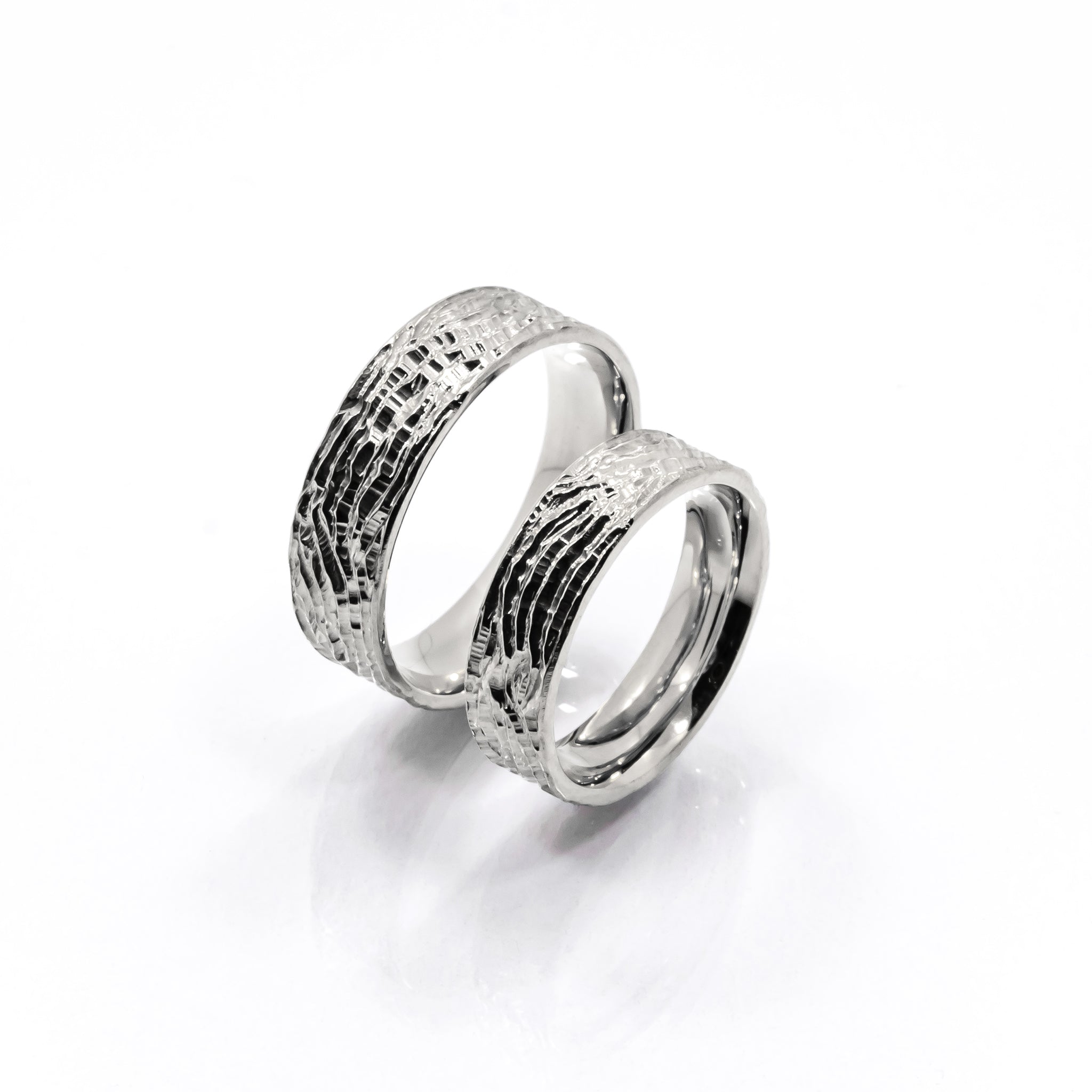 The width of the rings is 5 mm for sizes 48–58. From size 60 onwards, it is 7 mm. If you require a different width variation, please contact me.
